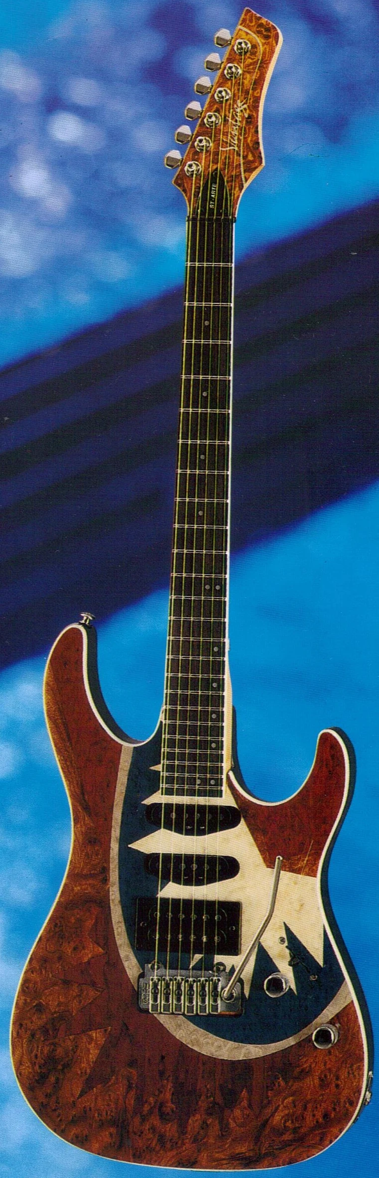 - "Tiger Tail" headstock veneer