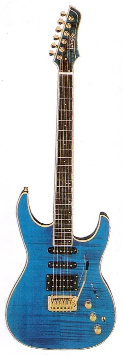 The Vantage 800 Series includes the same specifications as the 700 Series, but with flat tops, "Tiger Tail" flame Maple veneers, and multi-ply body binding.
